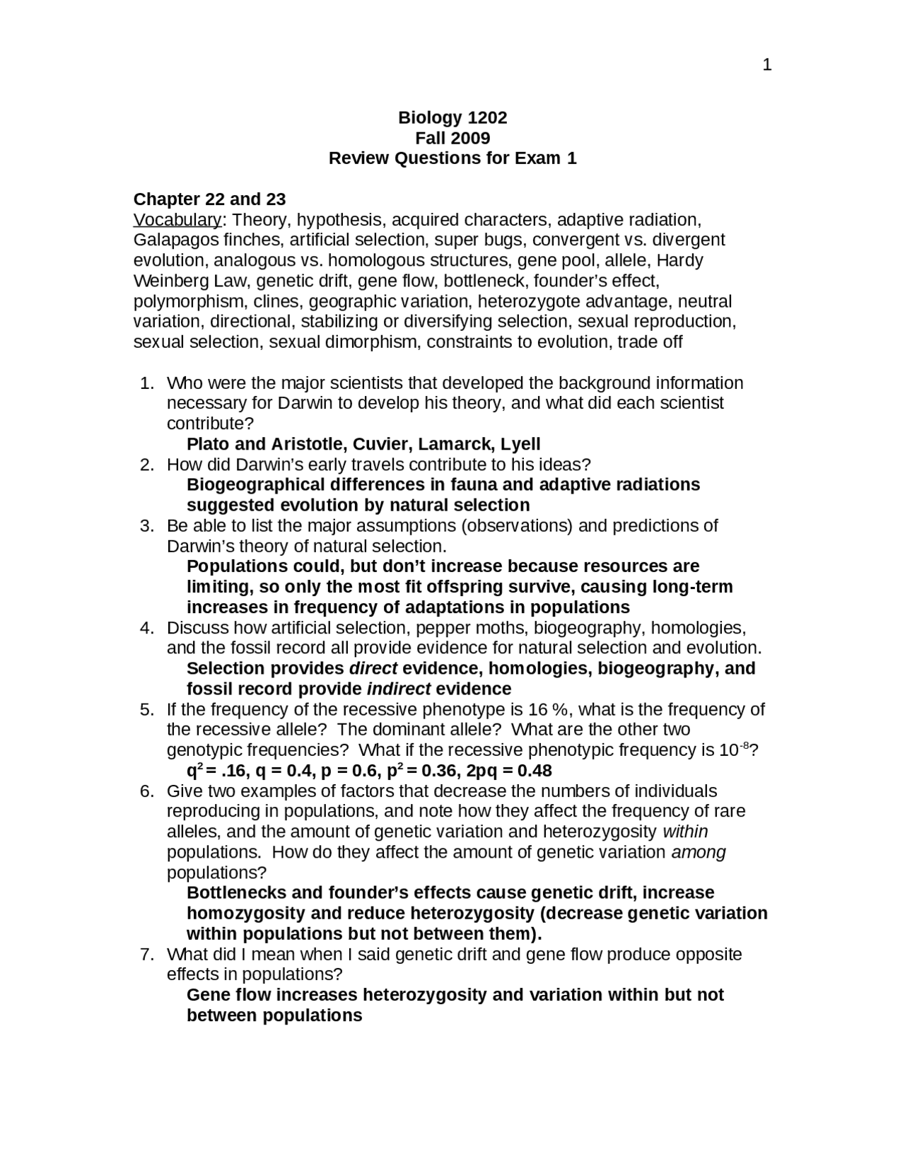 Vocabulary Review Questions On Biology For Science Major Ii For Exam Biol 1202 Study Notes Biology Docsity